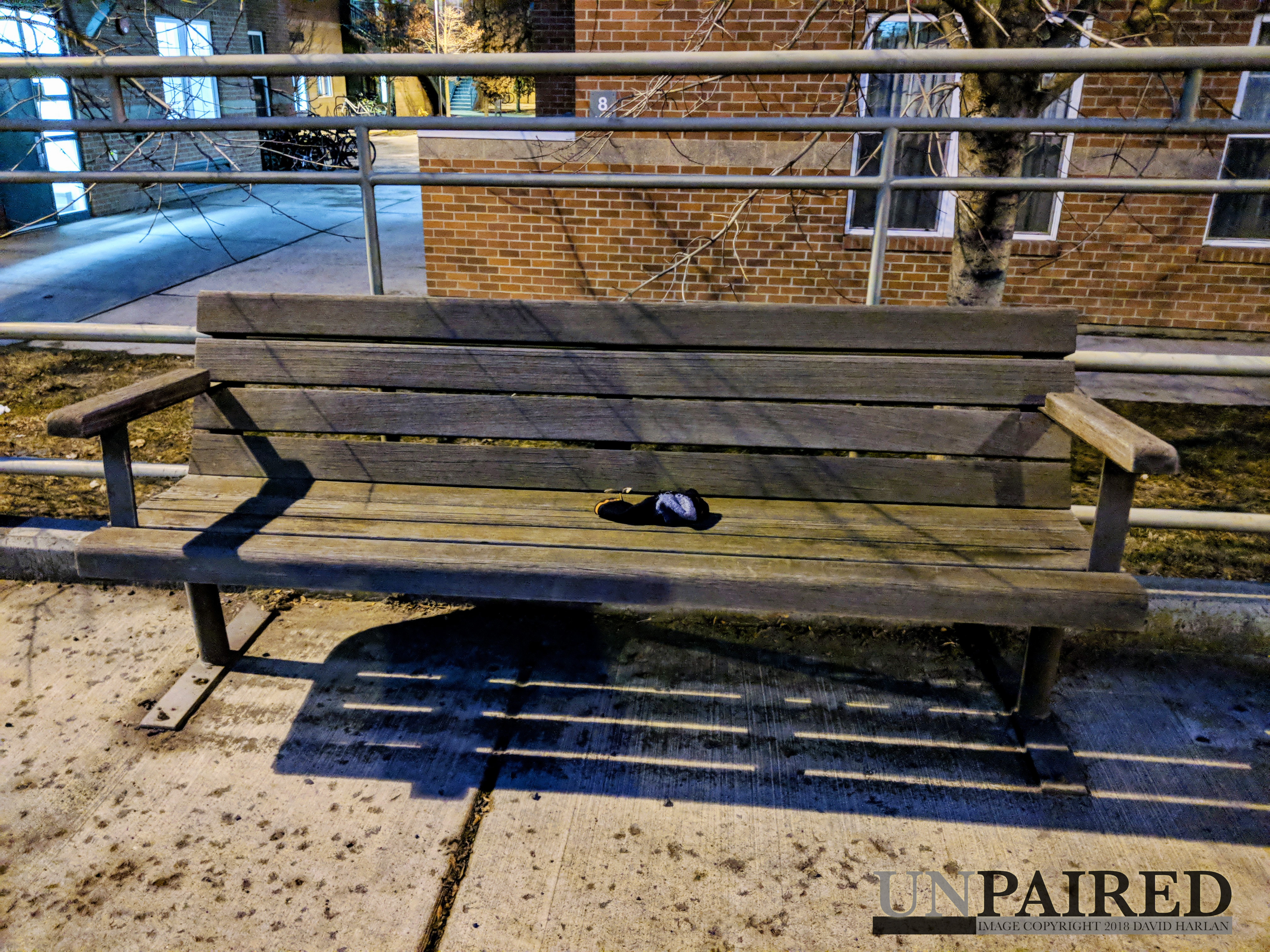 Sometimes an unpaired item stays in its spot on one of my routes around town for a long time. The blue mitten that sparked this project was a companion on my walks for months. As of this writing, the white sock is still out there. But some items disappear almost immediately; I’ve returned to photograph locations after only a few minutes to find an item gone.